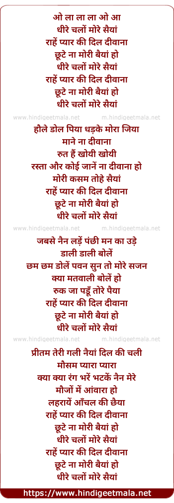 Lyrics of Dheere Chalo More Saiya - धीरे चलों मोरे सैयां