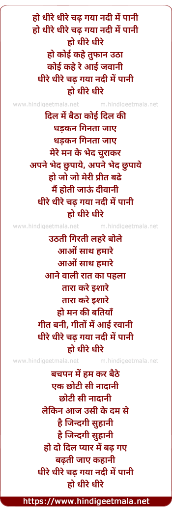 Lyrics of Dheere Dheere Aa Tu Is Nadi Me - हो धीरे धीरे चढ़ गया नदी में पानी