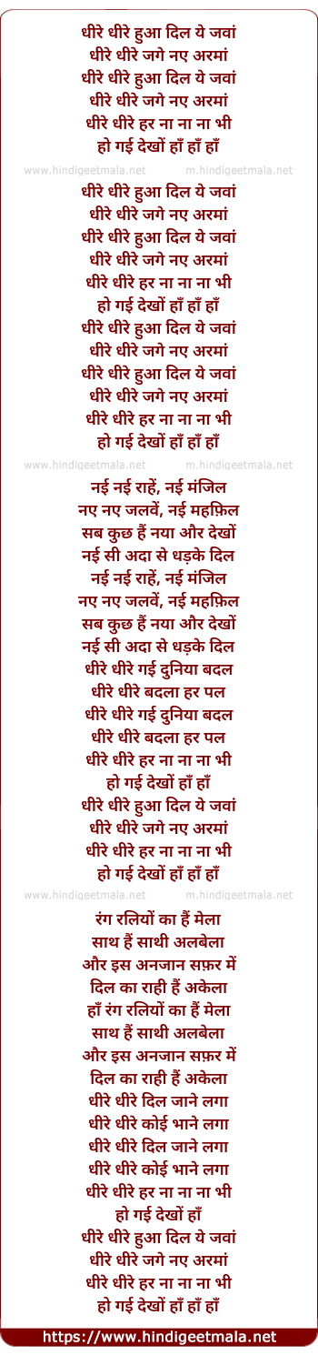 Lyrics of Dheere Dheere Hua Dil Ye Jawa (Female) - धीरे धीरे हुआ दिल ये जवां