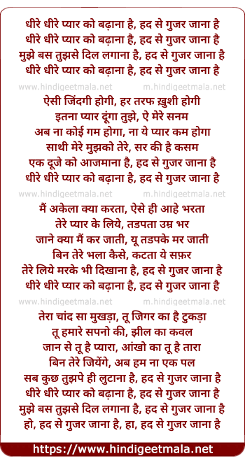 dhire dhire pyar ko badhaana hai, had se guzar jana hai