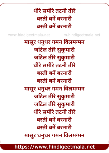 Lyrics of Dheere Samire Thatani Teere - धीरे समीरे तटनी तीरे