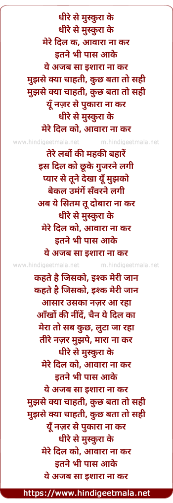 Lyrics of Dheere Se Muskura Ke - धीरे से मुस्कुरा के