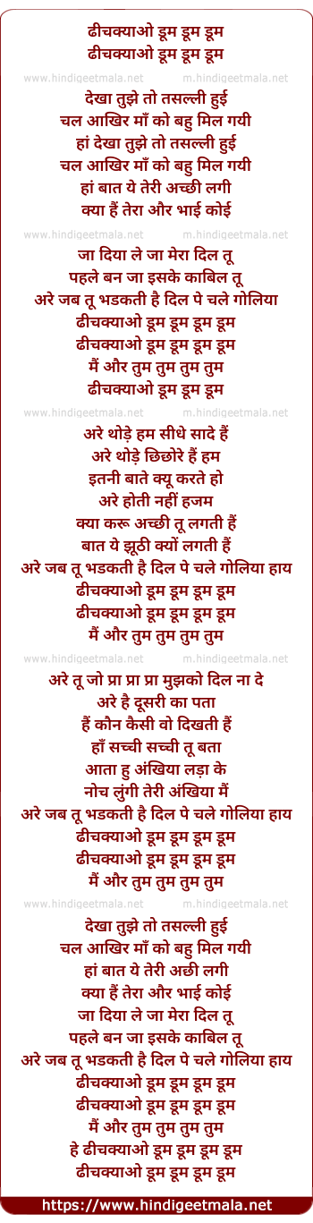 Lyrics of Dhichkau Doom Doom - ढीचक्याओ डूम डूम डूम