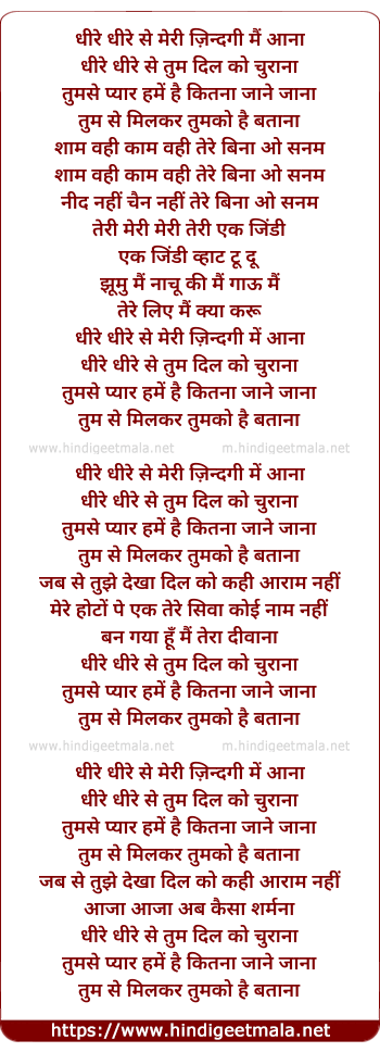 dheere dheere se meri zindagi main aana