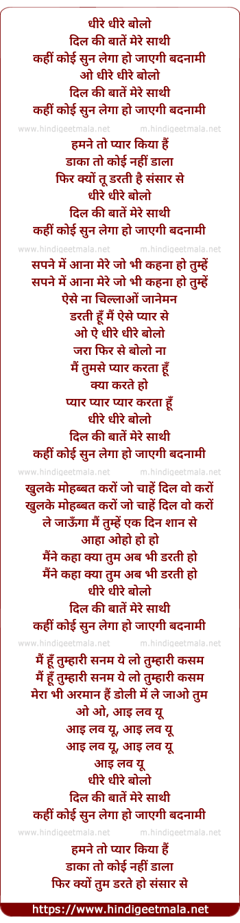 Lyrics of Dhire Dhire Bolo - धीरे धीरे बोलो