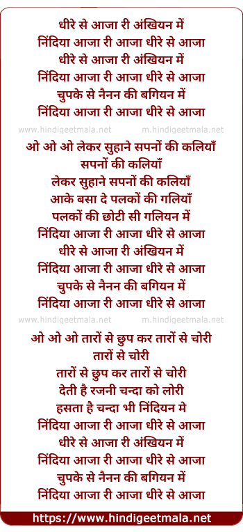Lyrics of Dhire Se Aaja Ri Ankhiyan Me (Duet) - धीरे से आजा री अंखियन में