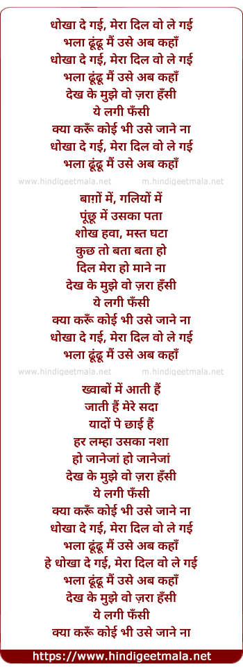 Lyrics of Dhoka De Gayee - धोखा दे गई, मेरा दिल वो ले गई