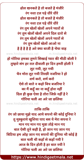 Lyrics of Dhol Khanakte Hain - ढोल खनकते है