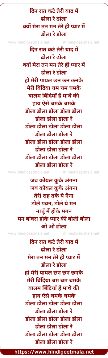 Lyrics of Dhola - दिन रात कटे तेरी याद में