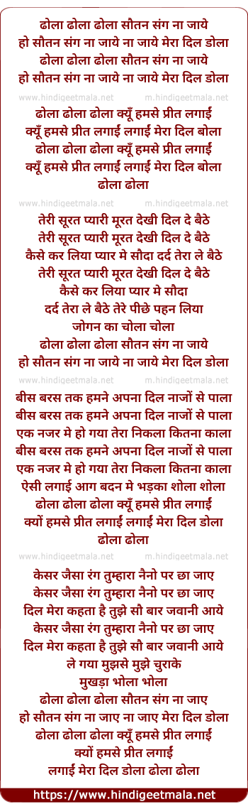 Lyrics of Dhola Dhola Dhola Sautan Sang Na Jaye - ढोला ढोला ढोला सौतन संग ना जाये