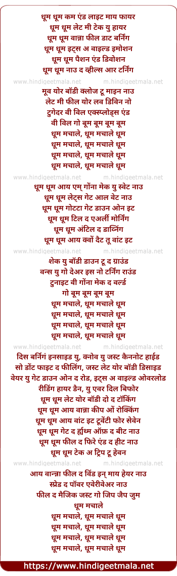 Lyrics of Dhoom Dhoom - धूम धूम
