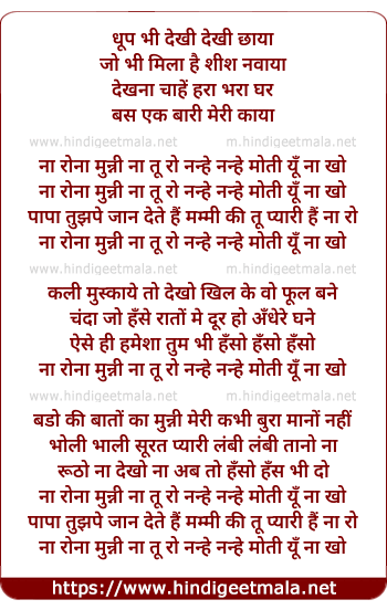 na rona munni na tu ro nanhe nanhe moti yu na kho