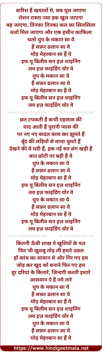 Lyrics of Dhoop Ke Makan Sa Ye Hai Safar - धुप के मकान सा ये हैं सफ़र