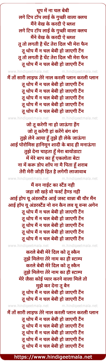 Lyrics of Dhup Me Na Chal - धुप में ना चल
