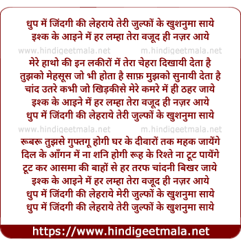 Lyrics of Dhoop Mein Zindagi - धुप में जिंदगी