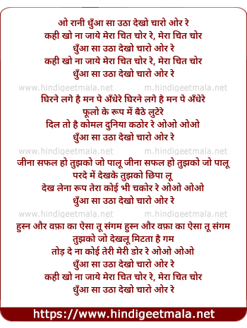 Lyrics of Dhuan Sa Utha Dekho Chaaro Or Re - धुँआ सा उठा देखो चारो ओर रे