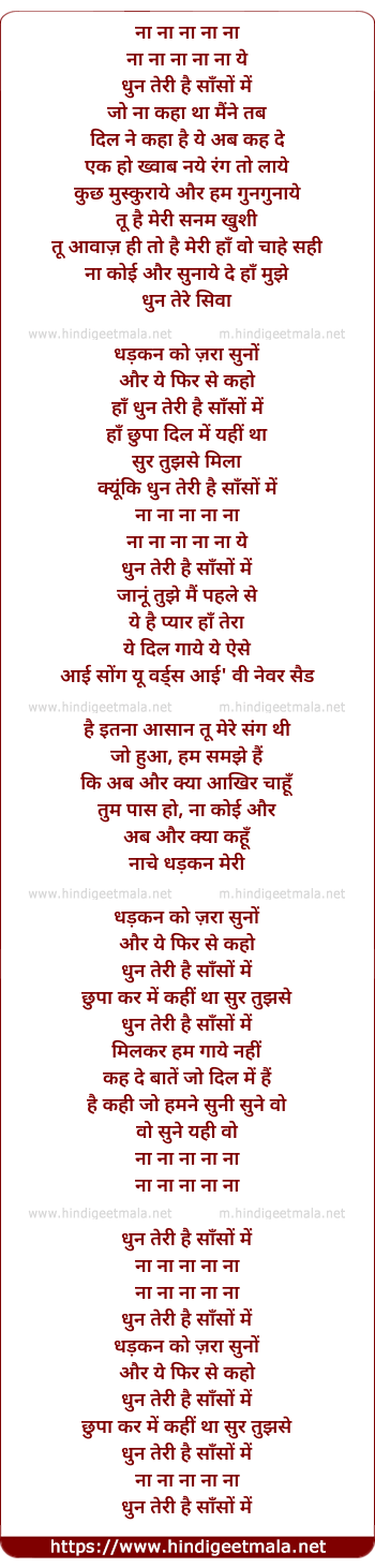 Lyrics of Dhun Teree Hai Sanso Me - ना ना ना ना ना