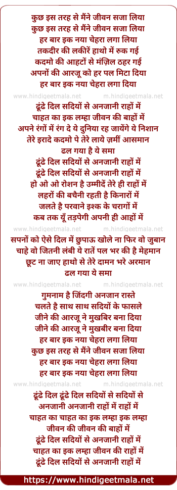 Lyrics of Dhundhe Dil Sadiyon Se Anjaani Raahon Mein - ढूंढे दिल सदियों से अनजानी राहों में