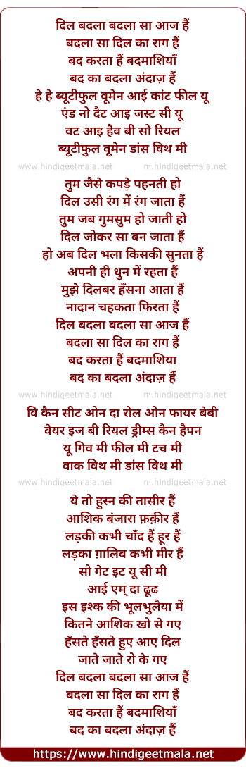 Lyrics of Dil Badla Badla Sa Aaj Hai - दिल बदला बदला सा आज हैं