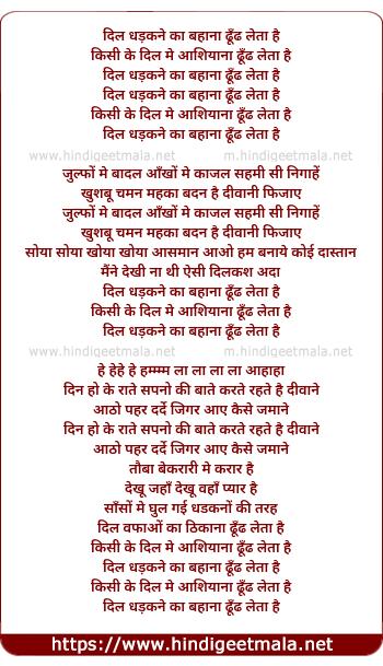 Lyrics of Dil Dadkane Ka Bahana Dhund Leta Hai - दिल धड़कने का बहाना ढूँढ लेता है