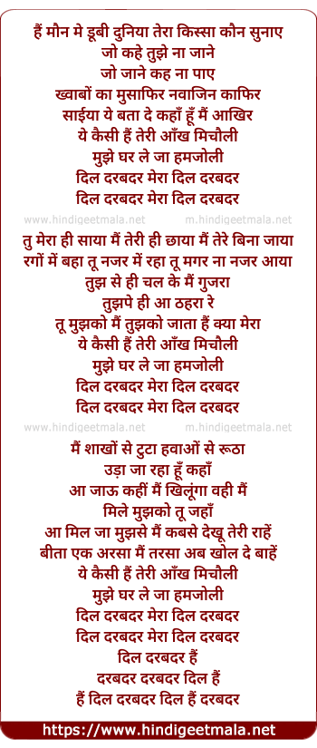 Poetic Translation - Lyrics of Dil Darbadar - दिल दरबदर