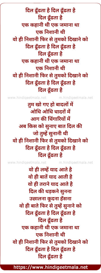 Lyrics of Dil Dhundta Hai - दिल ढूँढता है