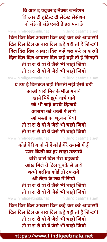 dil dil dil aawara dil kahe yahi to hai zindagi