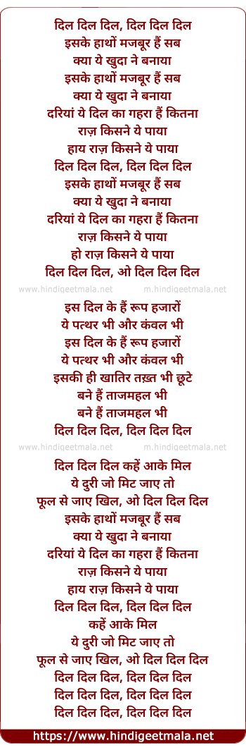 Poetic Translation - Lyrics of Dil Dil Dil (Duet) - दिल दिल दिल, दिल दिल दिल