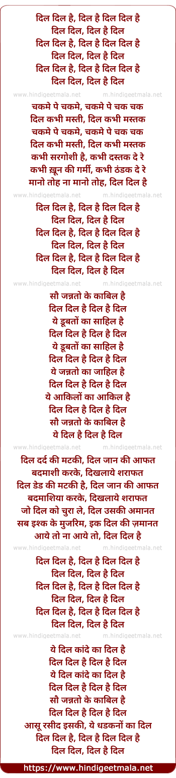 Poetic Translation - Lyrics of Dil Diil Hai - दिल दिल है