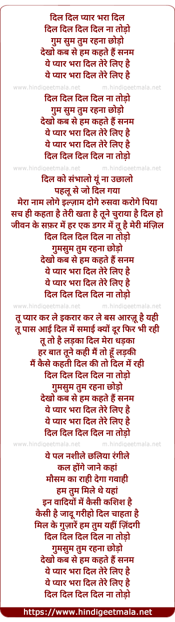 Lyrics of Dil Dil Pyar Bhara Dil - दिल दिल प्यार भरा दिल