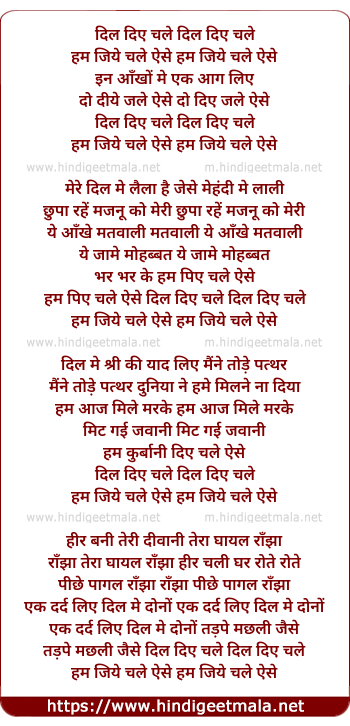 Dil Diye Chale Hum Diye Chale Aise - दिल दिए चले दिल दिए चले