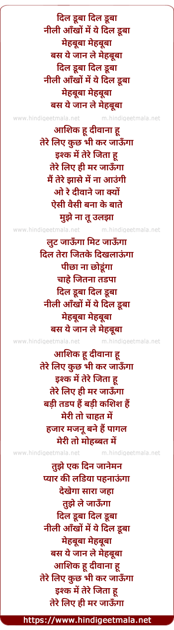 Lyrics of Dil Duba Dil Duba - दिल डूबा दिल डूबा