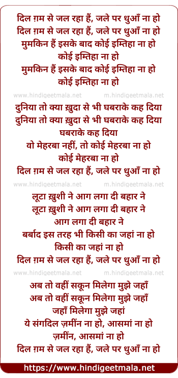 Lyrics of Dil Gam Se Jal Rahaa Hai Jale, Par Dhuaan Na Ho - दिल ग़म से जल रहा है जले, पर धुआँ न हो