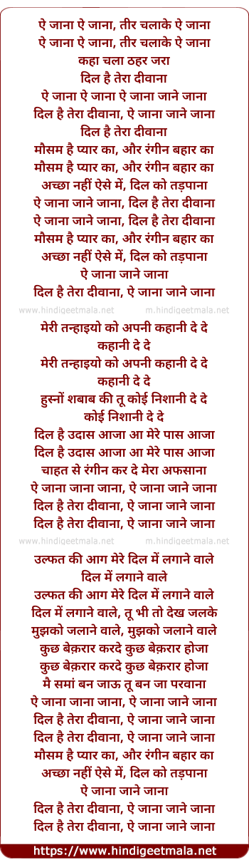 aye jana jane jana, dil hai tera diwana