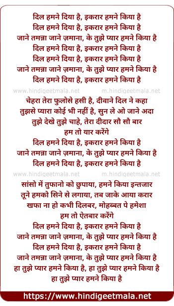 Lyrics of Dil Hamne Diya Hai - दिल हमने दिया है