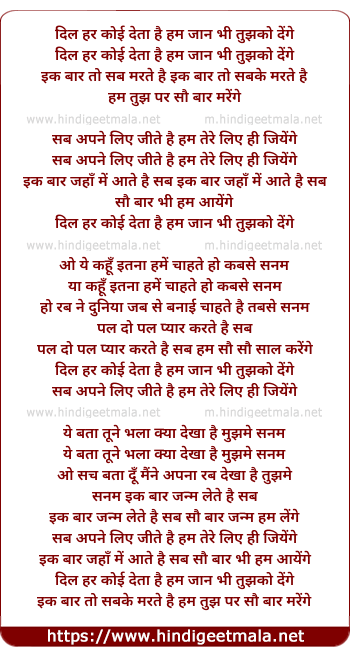 Lyrics of Dil Har Koi Deta Hai - दिल हर कोई देता है