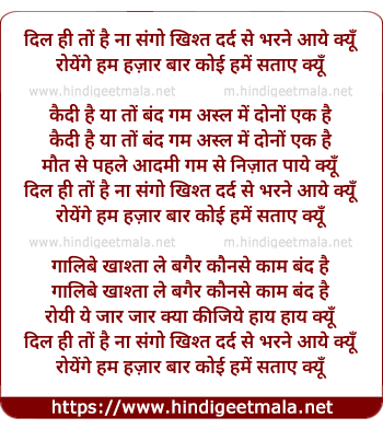dil hi to hai na sango khist dard se bharne aaye kyu