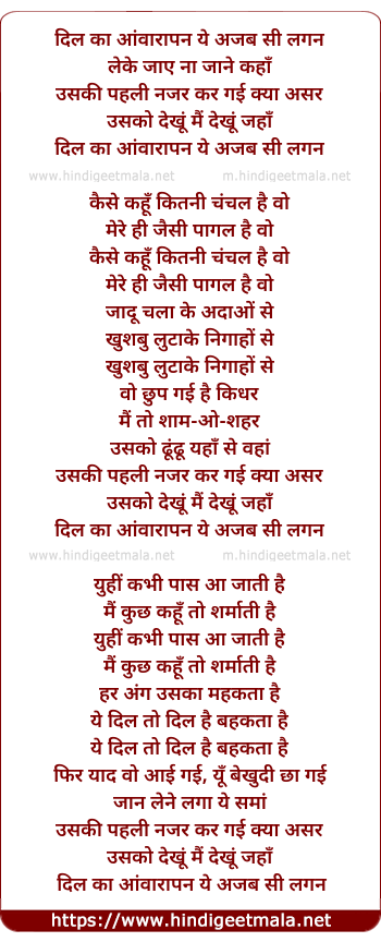 dil ka aawarapan ye ajab si lagan