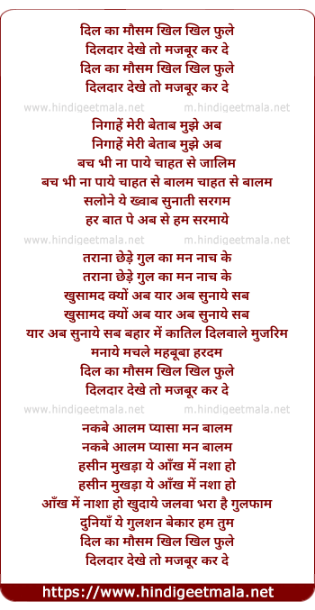 Lyrics of Dil Ka Mausam Khil Khil Phule - दिल का मौसम खिल खिल फुले