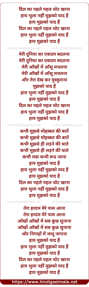 Lyrics of Dil Ka Pahle Pahal - दिल का पहले पहल