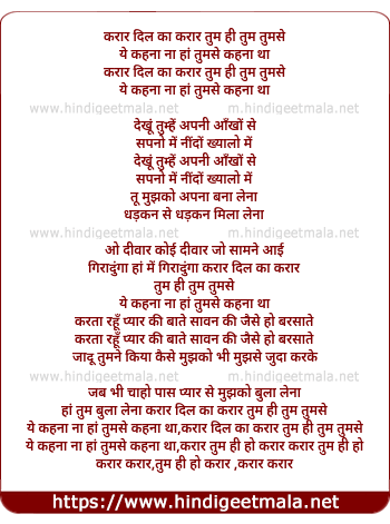 Lyrics of Dil Kaa Qarar - दिल का करार