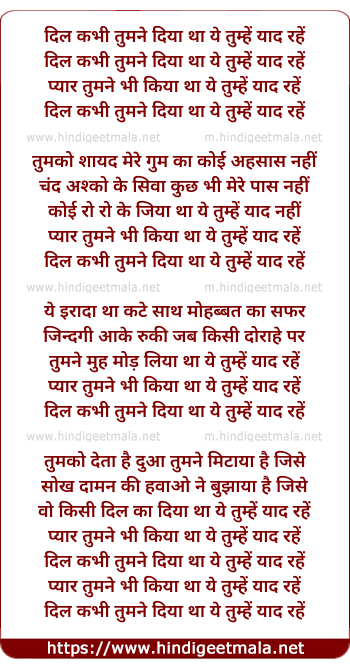 Lyrics of Dil Kabhi Tumne Diya Tha - दिल कभी तुमने दिया था