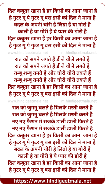 Lyrics of Dil Kabutar Khana Hai - दिल कबूतर खाना है