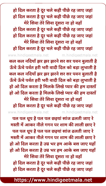 Lyrics of Dil Karata Hai Dur Chale Kahin - दिल करता है दूर चले कही