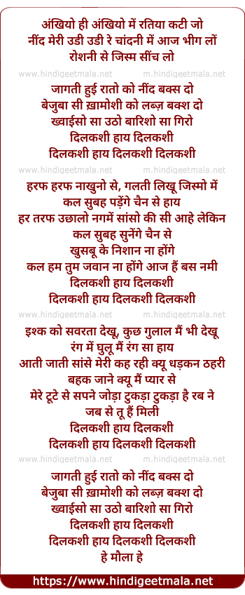 Lyrics of Dil Kashi Haay Dil Kashi - दिलकशी हाय दिलकशी