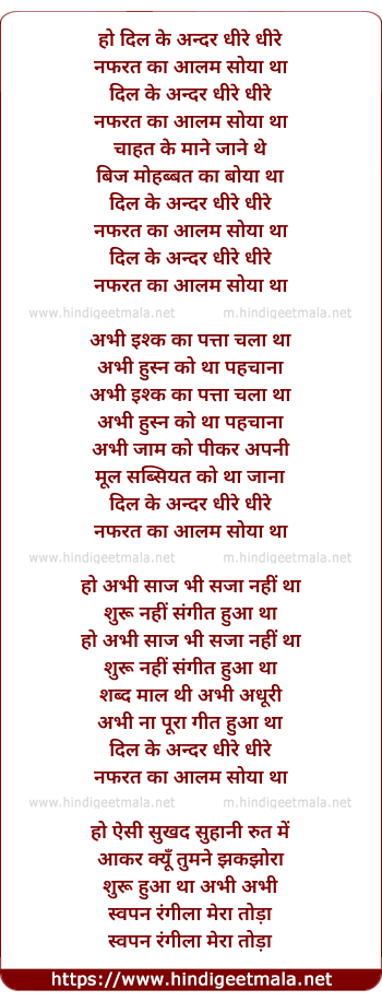 Lyrics of Dil Ke Andar - हो दिल के अन्दर धीरे धीरे