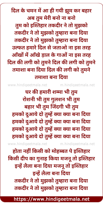 Lyrics of Dil Ke Chaman Me Aa - दिल के चमन में आ ही गयी झूम कर बहार