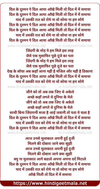 dil ke dusman pe dil aaya aankhe mili to dil me samaya