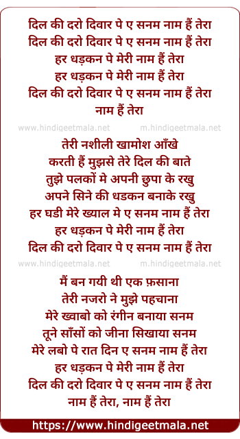Lyrics of Dil Ki Daro Diwar Pe - दिल की दरो दिवार पे