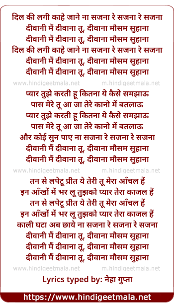 dil ki lagi kaahe jane na sajna re sajna re sajna